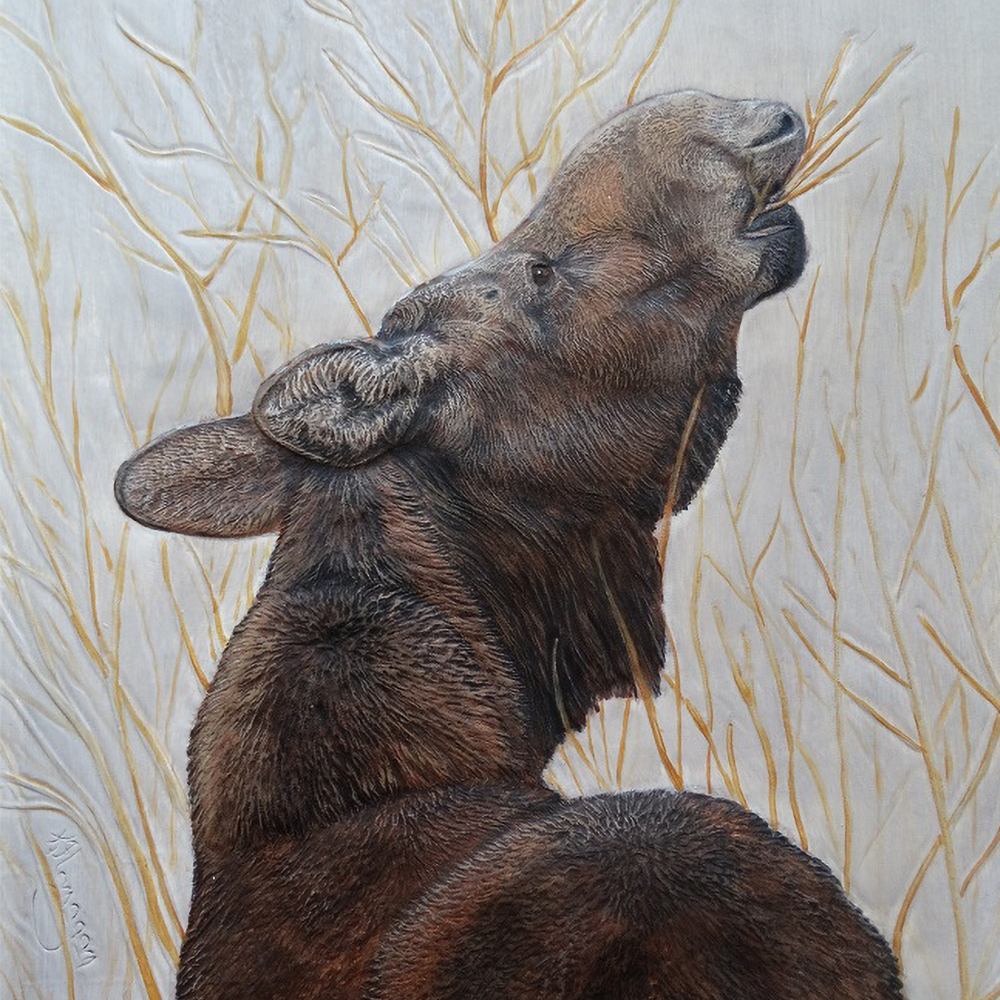 Workshop Description: The structural details of an animal are always most important, but with this picture, the color plays the greatest role in the presentation. Contrast is the major factor to successful coloring here. It has been a while since background color has been included in one of Kathy’s workshops, and this background has much more to it than meets the eye. The moose is embossed on leather cut to 8” x 10” and colored with acrylic paints. Your finished picture will be suitable for framing.